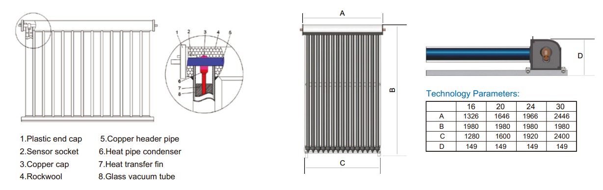 Zur kombination der Biomasse oder Wärmepumpe empfehlen wir die Anlagen mit einer Solarthermieanlage zu ergänzen hier bieten wir Anlagen der Firma Changzhou Xinwang Green Energy, der AKHII 1800/58 Kollektor bietet durch die Heatpipekonstruktion einen sehr hoher Wirkungsgrad bei einem gleichzeitig sehr einfachen Aufbau der Anlage, alle Teile können einzeln zum Montageort gebracht werden und können dort montiert werden.